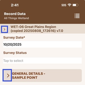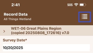 - Tap the project name or list icon for the project you are collecting data for.