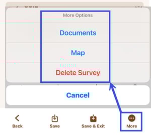 - When in a Project, or a survey, tap the 3-dot menu to select Map View. Then tap the 3-dot menu again to toggle dropped points and project locations on and off.